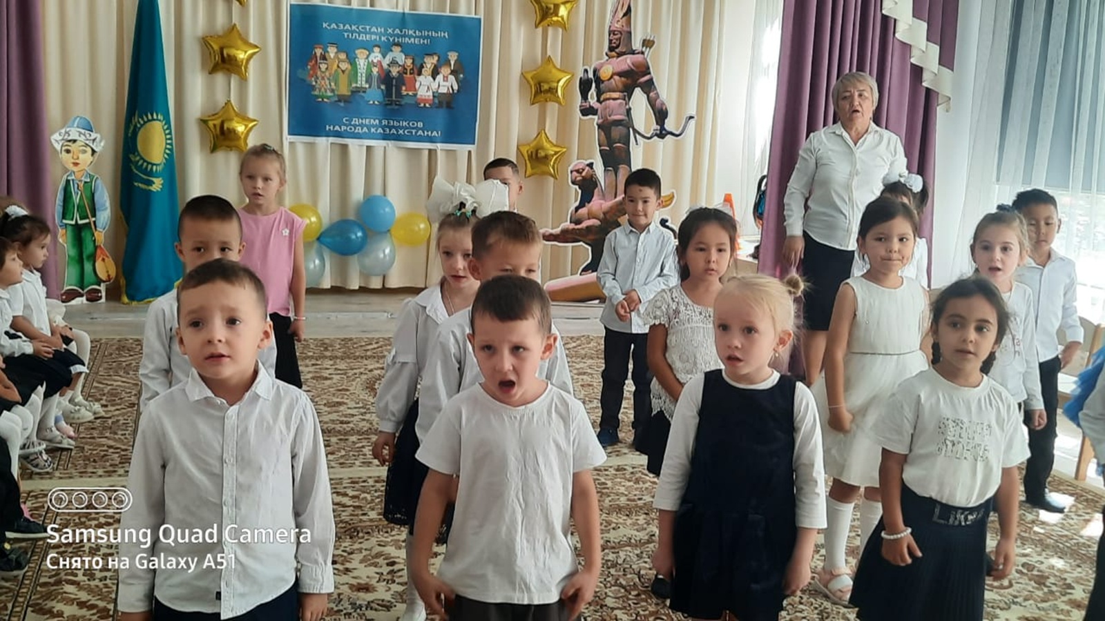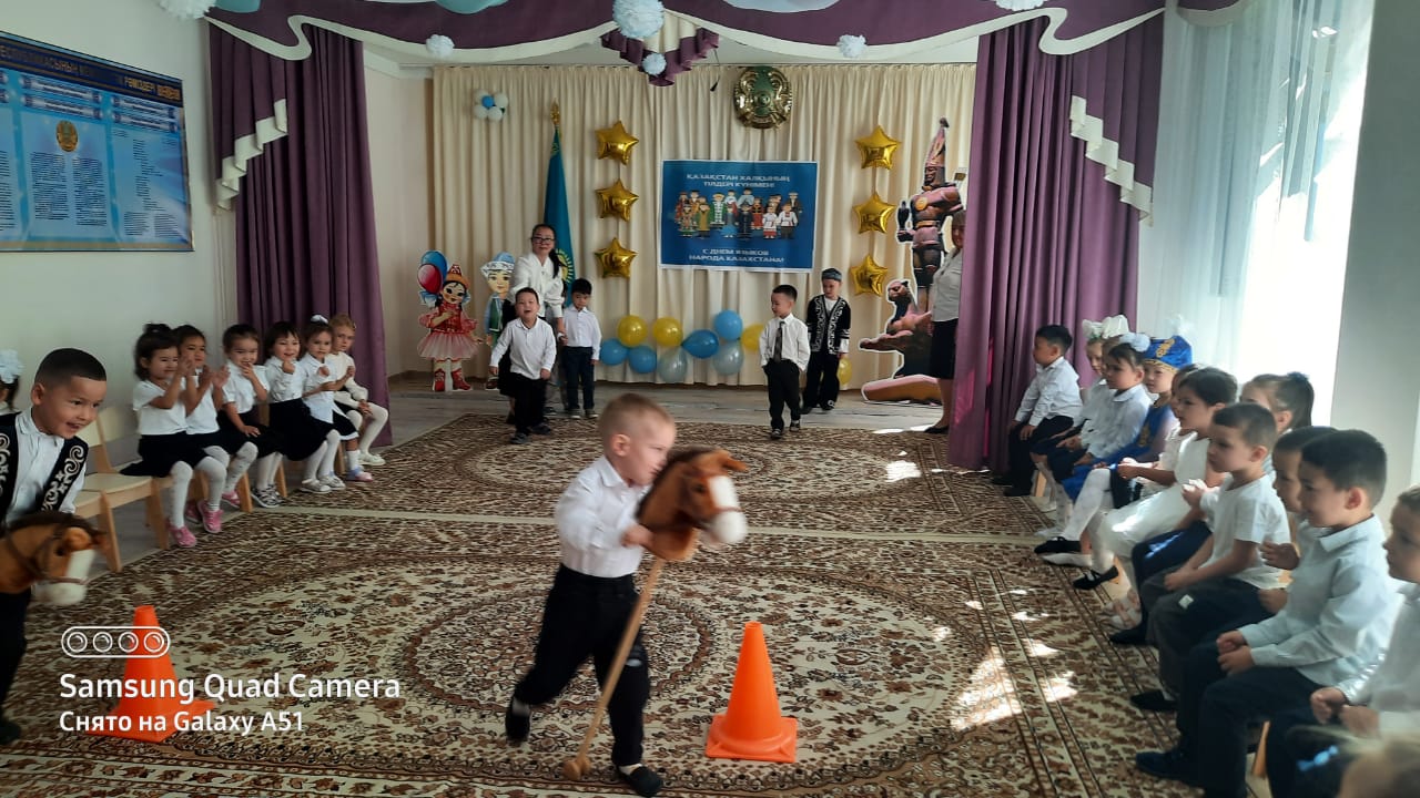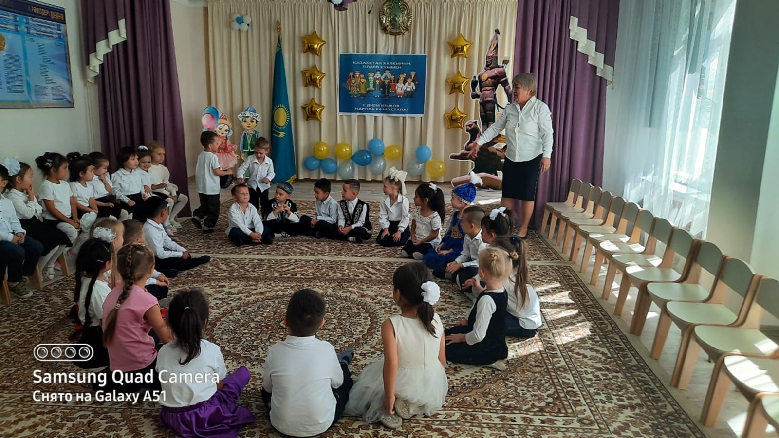 Цель: Познакомить детей с праздником - День языков народов Казахстана, с культурой разных народов: народными песнями, играми. Развивать умение двигаться под музыку. Обогащать музыкальные впечатления. Совершенствовать исполнительские навыки. Воспитывать интерес к культуре разных народов, уважение к людям разных национальностей.
