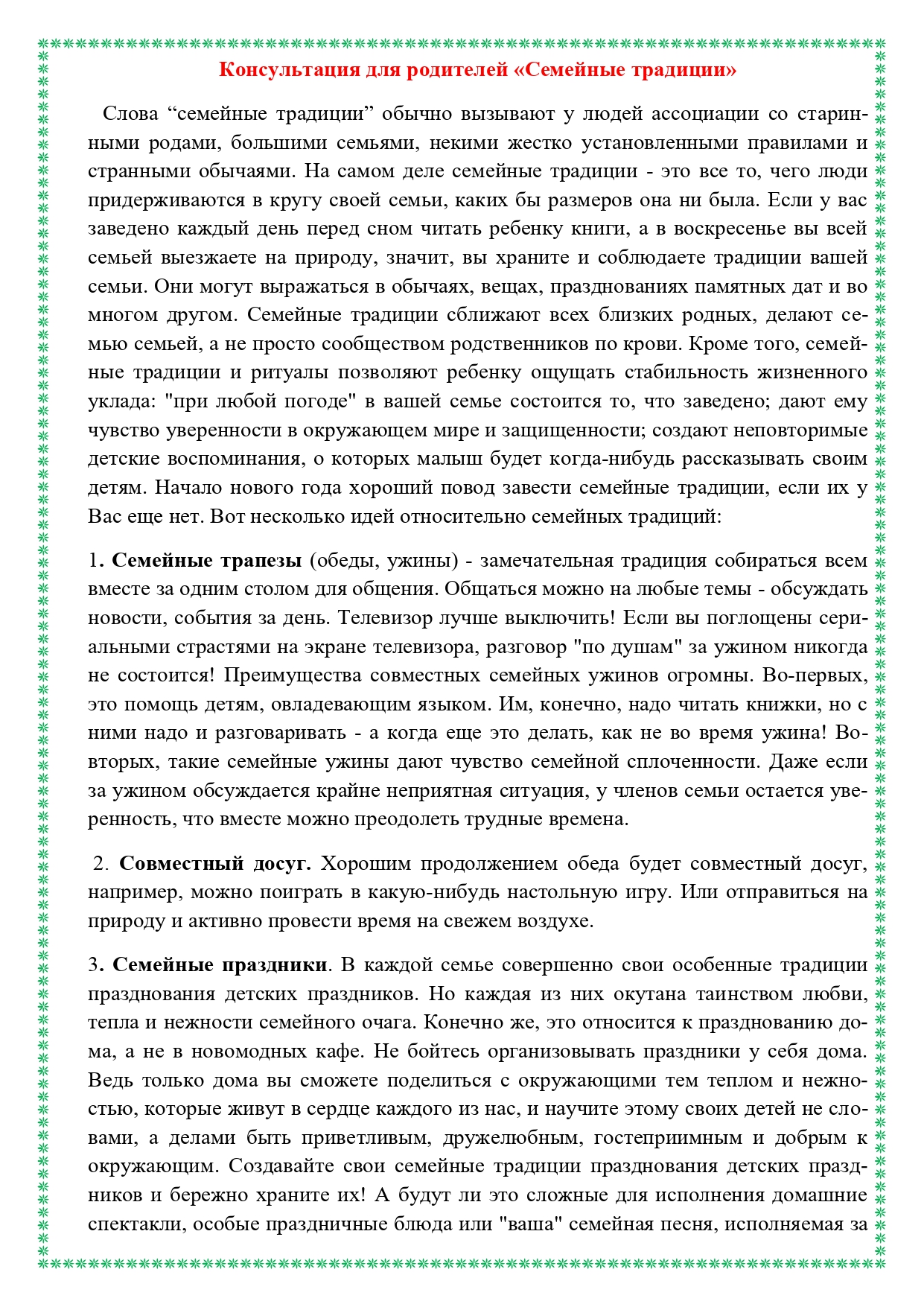 Консультация для родителей "Семейные традиции"