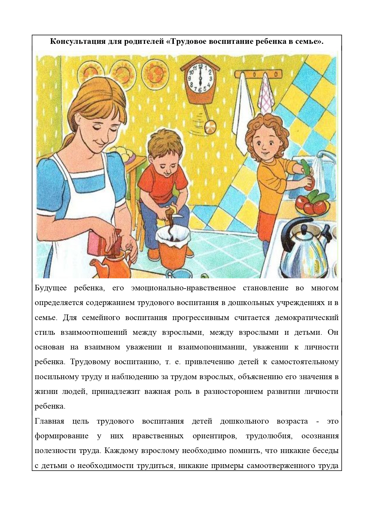 » Консультация для родителей. "Трудовое воспитание ребенка в семье"