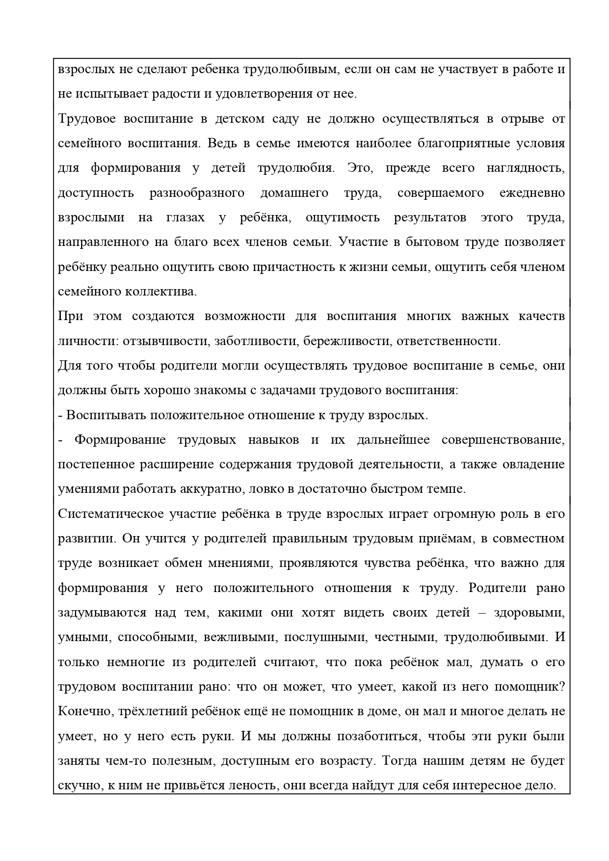 Консультация для родителей. "Трудовое воспитание ребенка в семье"